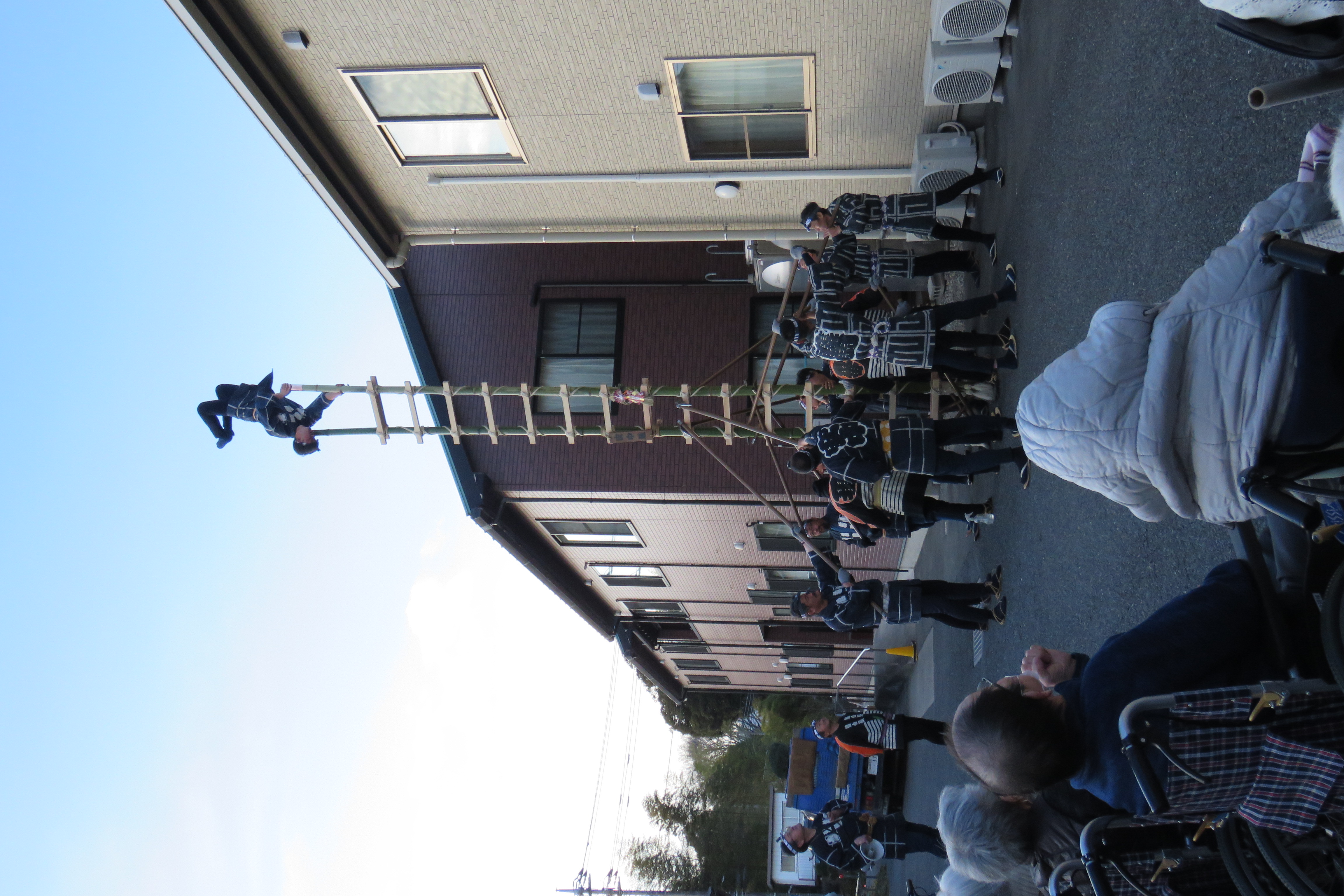 階の窓ほどの高さで、命綱なしに様々な技を披露して頂きました。
